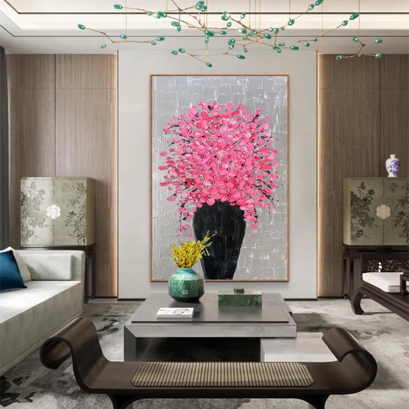 Modern Home Decor Thick Texture Abstract 3D Relief Knife Flower Oil Hand-Painted Canvas Wall Art